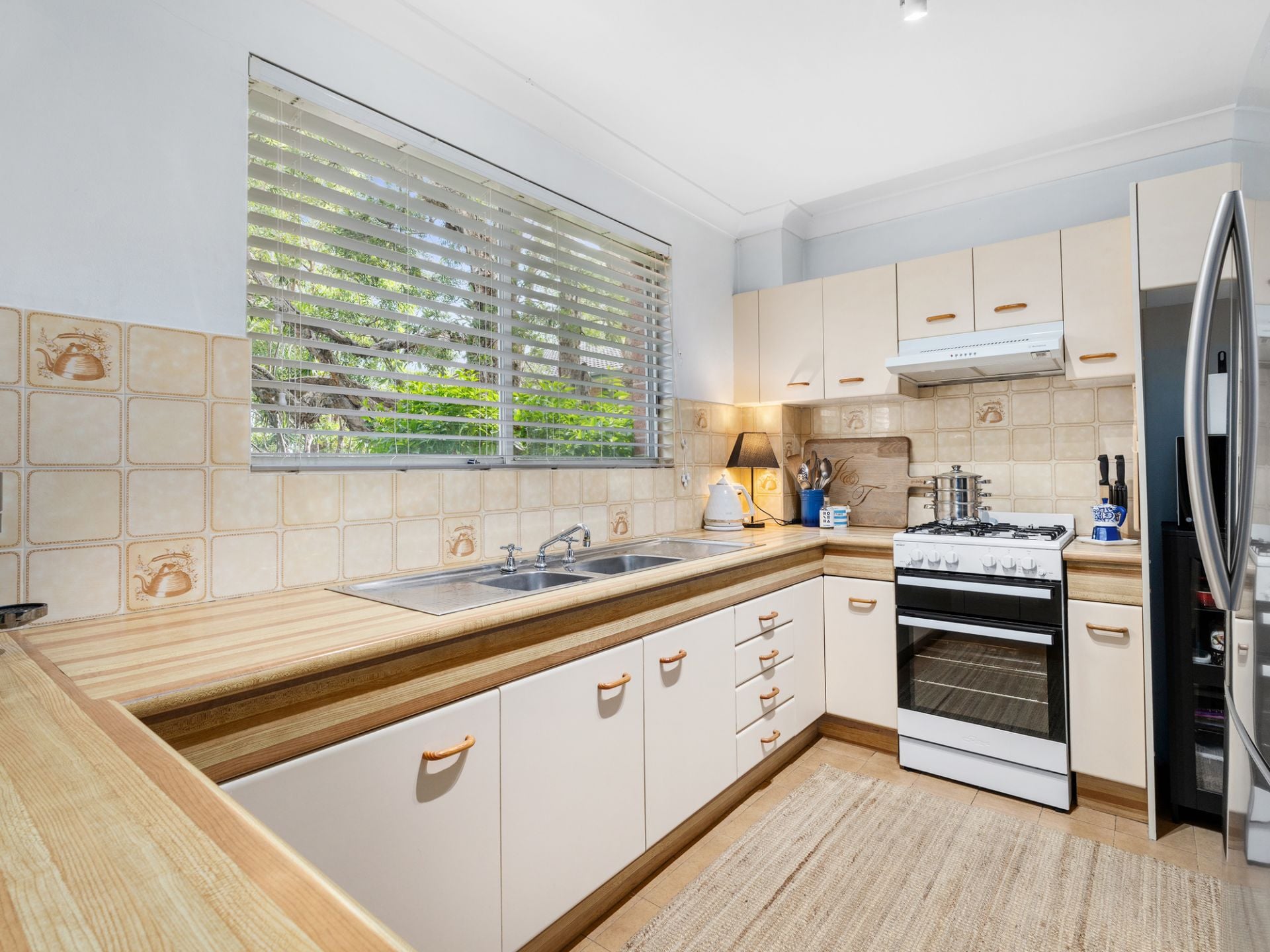 - Generously proportioned and tidy kitchen with ample storage and gas cooking.