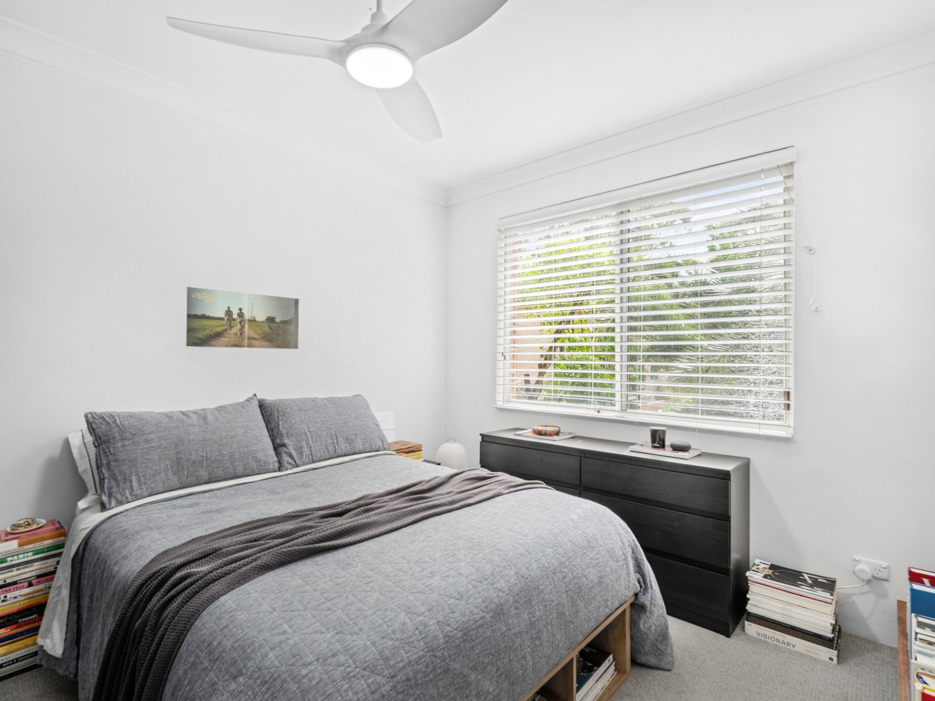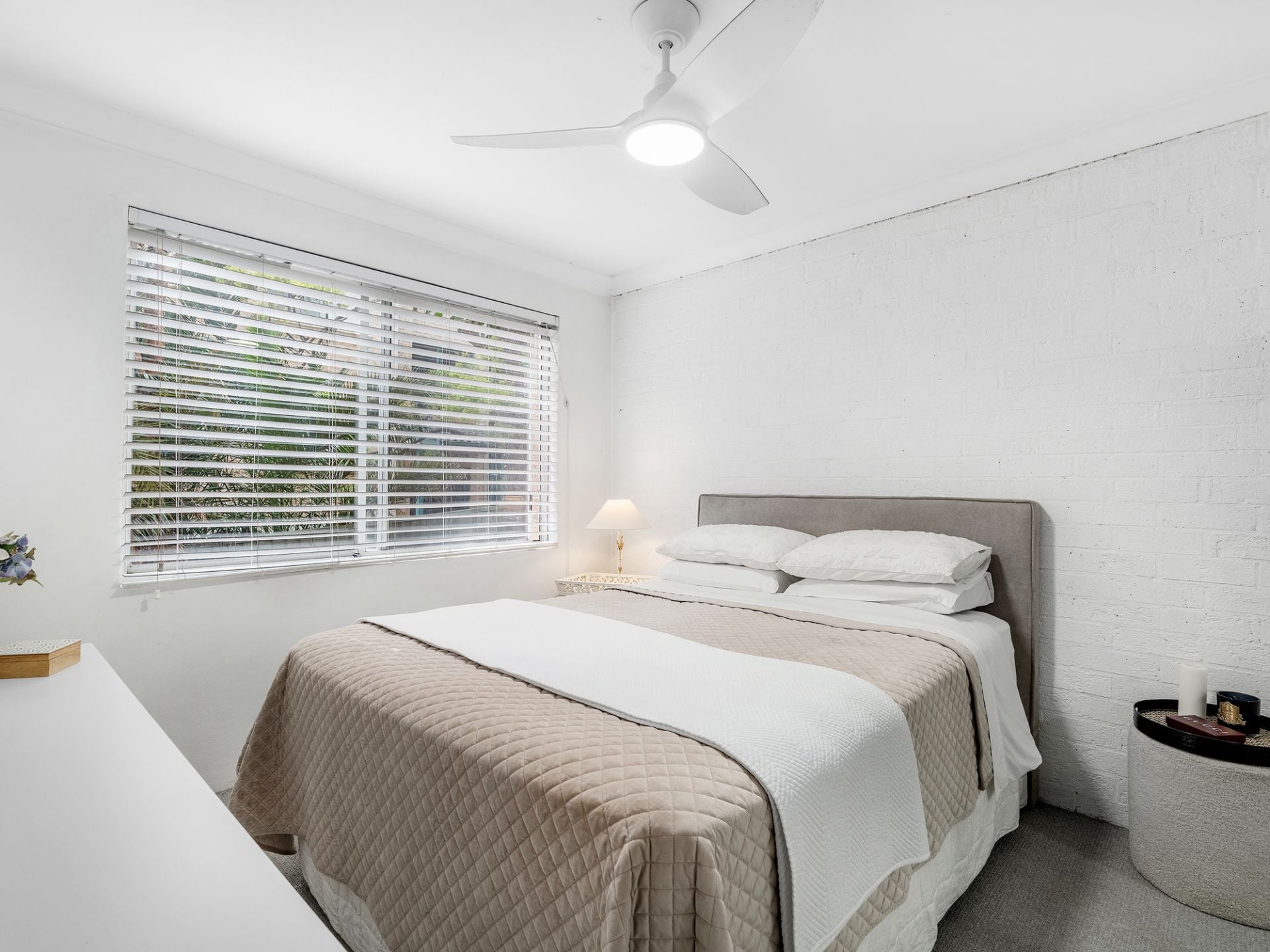 - Two spacious bedrooms with ceiling fans, built-in wardrobes in main.