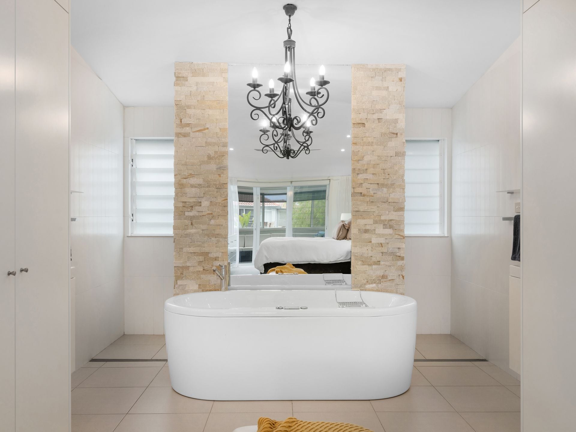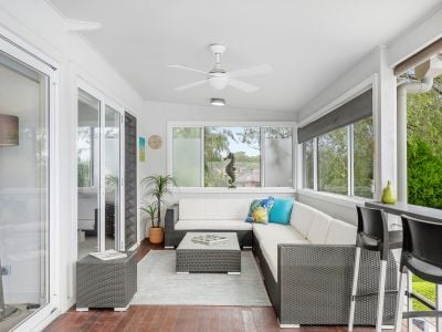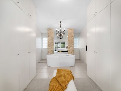 - Glass louvres, plantation shutters, air conditioning, ceiling fans, and a range of modern creature comforts throughout.