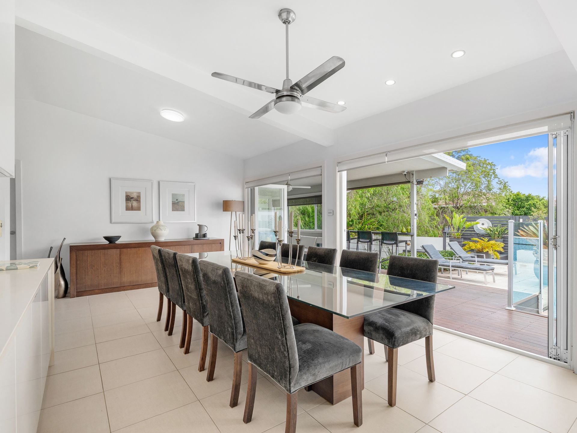 - An expansive light-filled kitchen & dining space forms the heart of the home, ideal for family living or hosting friends, with a pleasant poolside view.